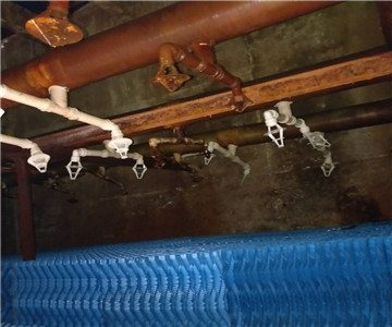 在清理完泥垢和廢棄的冷卻塔填料后,要更換噴頭,因為多數(shù)冷卻塔填料托架都是玻璃鋼材質(zhì)的,時間用久了就會老化,承托效果下降,所以在更換冷卻塔天聊的同時也需要更換托架,并且檢修排水管。