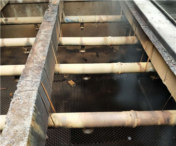 冷卻水在循環(huán)過程中,不可避免的產(chǎn)生泥灰、脫落銹渣、微生物體等雜物,也會堆積堵塞填料間歇,冷卻塔的冷卻效果也會明顯下降,因此更換填料也是清堵的過程,要及時運(yùn)出水堿垃圾, 清理頂部布水槽。